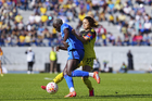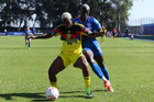Cuernavaca, Morelos, 9 de febrero de 2026. Chidinma Okeke y Michaela Abam, durante el partido correspondiente a la jornada 8 del torneo Clausura 2026 de la Liga BBVA MX Femenil, entre la Máquina Celeste del Cruz Azul y las Águilas del América, realizado en el estadio Centenario. Foto: Imago7/ Daniel Sydney