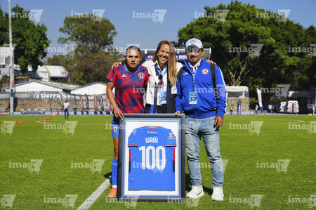 Cuernavaca, Morelos, 9 de febrero de 2026. Reconocimiento a Ana Garcia por sus 100 partidos, durante el partido correspondiente a la jornada 8 del torneo Clausura 2026 de la Liga BBVA MX Femenil, entre la Máquina Celeste del Cruz Azul y las Águilas del América, realizado en el estadio Centenario. Foto: Imago7/ Manlio Contreras