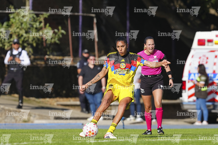 Cuernavaca, Morelos, 9 de febrero de 2026. Xcaret Pineda, durante el partido correspondiente a la jornada 8 del torneo Clausura 2026 de la Liga BBVA MX Femenil, entre la Máquina Celeste del Cruz Azul y las Águilas del América, realizado en el estadio Centenario. Foto: Imago7/ Manlio Contreras