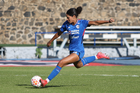 Cuernavaca, Morelos, 9 de febrero de 2026. Niomi Grimaldo, durante el partido correspondiente a la jornada 8 del torneo Clausura 2026 de la Liga BBVA MX Femenil, entre la Máquina Celeste del Cruz Azul y las Águilas del América, realizado en el estadio Centenario. Foto: Imago7/ Daniel Sydney