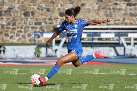 Cuernavaca, Morelos, 9 de febrero de 2026. Daniela Calderón, durante el partido correspondiente a la jornada 8 del torneo Clausura 2026 de la Liga BBVA MX Femenil, entre la Máquina Celeste del Cruz Azul y las Águilas del América, realizado en el estadio Centenario. Foto: Imago7/ Daniel Sydney