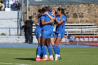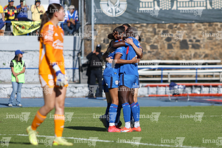 Cuernavaca, Morelos, 9 de febrero de 2026. Jugadoras de Cruz Azul femenil en festejo de gol, durante el partido correspondiente a la jornada 8 del torneo Clausura 2026 de la Liga BBVA MX Femenil, entre la Máquina Celeste del Cruz Azul y las Águilas del América, realizado en el estadio Centenario. Foto: Imago7/ Daniel Sydney