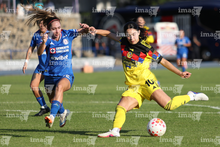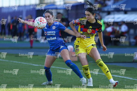 Cuernavaca, Morelos, 9 de febrero de 2026. Kiana Palacios y Valeria Valdez, durante el partido correspondiente a la jornada 8 del torneo Clausura 2026 de la Liga BBVA MX Femenil, entre la Máquina Celeste del Cruz Azul y las Águilas del América, realizado en el estadio Centenario. Foto: Imago7/ Manlio Contreras
