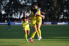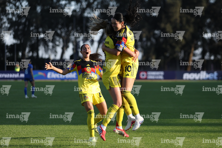 Cuernavaca, Morelos, 9 de febrero de 2026. Irene Guerrero y Scarlett Camberos en festejo de gol, durante el partido correspondiente a la jornada 8 del torneo Clausura 2026 de la Liga BBVA MX Femenil, entre la Máquina Celeste del Cruz Azul y las Águilas del América, realizado en el estadio Centenario. Foto: Imago7/ Daniel Sydney