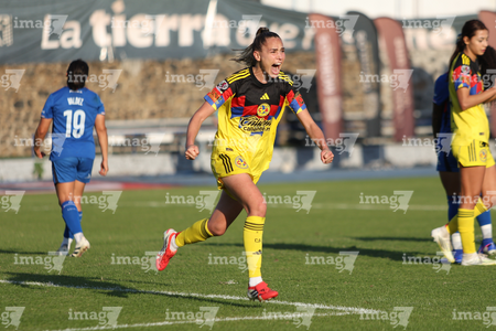 Cuernavaca, Morelos, 9 de febrero de 2026. Aerial Chavarin anota gol, durante el partido correspondiente a la jornada 8 del torneo Clausura 2026 de la Liga BBVA MX Femenil, entre la Máquina Celeste del Cruz Azul y las Águilas del América, realizado en el estadio Centenario. Foto: Imago7/ Daniel Sydney