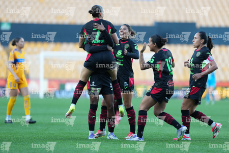 San Nicolás de los Garza, Nuevo León, 9 de febrero de 2026. Norma Palafox en festejo de gol, durante el partido correspondiente a la jornada 8 del torneo Clausura 2026 de la Liga BBVA MX Femenil, entre las Tigres de la UANL y las Bravas de FC Juárez, realizado en el estadio Universitario. Foto: Imago7/ Andrea Jiménez