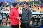 San Nicolás de los Garza, Nuevo León, 9 de febrero de 2026. Oscar Fernández, director técnico y Pedro Martínez, director técnico, durante el partido correspondiente a la jornada 8 del torneo Clausura 2026 de la Liga BBVA MX Femenil, entre las Tigres de la UANL y las Bravas de FC Juárez, realizado en el estadio Universitario. Foto: Imago7/ Andrea Jiménez