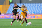 San Nicolás de los Garza, Nuevo León, 9 de febrero de 2026. Ella Sanchez y Emma Watson, durante el partido correspondiente a la jornada 8 del torneo Clausura 2026 de la Liga BBVA MX Femenil, entre las Tigres de la UANL y las Bravas de FC Juárez, realizado en el estadio Universitario. Foto: Imago7/ Andrea Jiménez