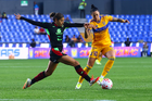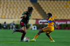 San Nicolás de los Garza, Nuevo León, 9 de febrero de 2026. Thembi Kgatlana (D), durante el partido correspondiente a la jornada 8 del torneo Clausura 2026 de la Liga BBVA MX Femenil, entre las Tigres de la UANL y las Bravas de FC Juárez, realizado en el estadio Universitario. Foto: Imago7/ Andrea Jiménez