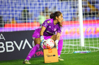San Nicolás de los Garza, Nuevo León, 9 de febrero de 2026. Cecilia Santiago toma Balón de futbol Nike Control de caja de Amazon, durante el partido correspondiente a la jornada 8 del torneo Clausura 2026 de la Liga BBVA MX Femenil, entre las Tigres de la UANL y las Bravas de FC Juárez, realizado en el estadio Universitario. Foto: Imago7/ David Arzamendi