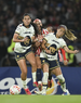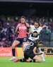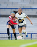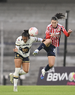 Ciudad de México, 9 de febrero de 2026. Yamile Franco y Alejandra Guerrero, durante el partido correspondiente a la jornada 8 del torneo Clausura 2026 de la Liga BBVA MX Femenil, entre las Pumas de la UNAM y las Chivas Rayadas del Guadalajara, realizado en el estadio Olímpico Universitario. Foto: Imago7/ Alexis Chavez