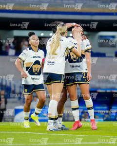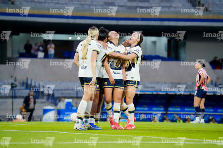 Ciudad de México, 9 de febrero de 2026. Alicia Cervantes anota gol en fuera de lugar, durante el partido correspondiente a la jornada 8 del torneo Clausura 2026 de la Liga BBVA MX Femenil, entre las Pumas de la UNAM y las Chivas Rayadas del Guadalajara, realizado en el estadio Olímpico Universitario. Foto: Imago7/ Diego Padilla