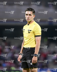 Ciudad de México, 9 de febrero de 2026. Figo Rodolfo López Valle, árbitro central, durante el partido correspondiente a la jornada 8 del torneo Clausura 2026 de la Liga BBVA MX Femenil, entre las Pumas de la UNAM y las Chivas Rayadas del Guadalajara, realizado en el estadio Olímpico Universitario. Foto: Imago7/ Alexis Chavez