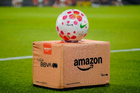 Ciudad de México, 9 de febrero de 2026. Balón de futbol Nike Control sobre caja de Amazon, durante el partido correspondiente a la jornada 8 del torneo Clausura 2026 de la Liga BBVA MX Femenil, entre las Pumas de la UNAM y las Chivas Rayadas del Guadalajara, realizado en el estadio Olímpico Universitario. Foto: Imago7/Etzel Espinosa