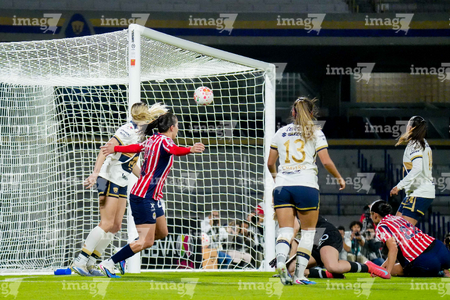 Ciudad de México, 9 de febrero de 2026. Alejandra Guerrero toma Balón de futbol Nike Control de caja de Amazon, durante el partido correspondiente a la jornada 8 del torneo Clausura 2026 de la Liga BBVA MX Femenil, entre las Pumas de la UNAM y las Chivas Rayadas del Guadalajara, realizado en el estadio Olímpico Universitario. Foto: Imago7/Etzel Espinosa