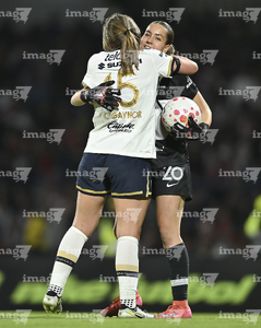 Ciudad de México, 9 de febrero de 2026. Angelina Hix y Cristina Ferral durante el partido correspondiente a la jornada 8 del torneo Clausura 2026 de la Liga BBVA MX Femenil, entre las Pumas de la UNAM y las Chivas Rayadas del Guadalajara, realizado en el estadio Olímpico Universitario. Foto: Imago7/Etzel Espinosa