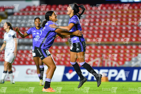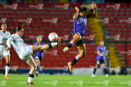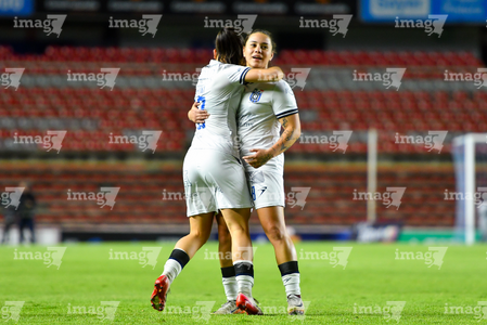 Querétaro, Querétaro, 9 de febrero de 2026. Claudia Lozoya y Daniela Solera, durante el partido correspondiente a la jornada 8 del torneo Clausura 2026 de la Liga BBVA MX Femenil, entre el Club Querétaro y las Cañoneras del Mazatlán FC, realizado en el estadio La Corregidora. Foto: Imago7/ Olimpia Puga