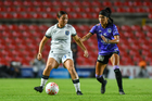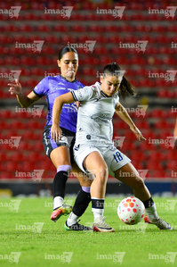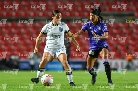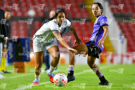 Querétaro, Querétaro, 9 de febrero de 2026. Marianyela Jiménez y Karen De León, durante el partido correspondiente a la jornada 8 del torneo Clausura 2026 de la Liga BBVA MX Femenil, entre el Club Querétaro y las Cañoneras del Mazatlán FC, realizado en el estadio La Corregidora. Foto: Imago7/ Olimpia Puga