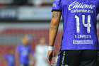 Querétaro, Querétaro, 9 de febrero de 2026. Tatuaje de Rebeca Zavaleta, durante el partido correspondiente a la jornada 8 del torneo Clausura 2026 de la Liga BBVA MX Femenil, entre el Club Querétaro y las Cañoneras del Mazatlán FC, realizado en el estadio La Corregidora. Foto: Imago7/ Olimpia Puga