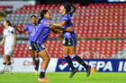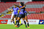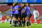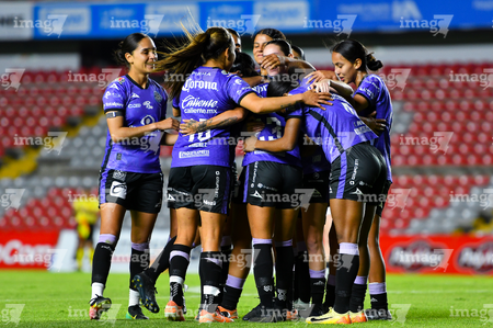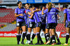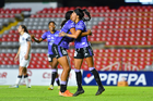 Querétaro, Querétaro, 9 de febrero de 2026. Jugadoras del Mazatlán femenil en festejo de gol, durante el partido correspondiente a la jornada 8 del torneo Clausura 2026 de la Liga BBVA MX Femenil, entre el Club Querétaro y las Cañoneras del Mazatlán FC, realizado en el estadio La Corregidora. Foto: Imago7/ Olimpia Puga