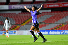 Querétaro, Querétaro, 9 de febrero de 2026. Ambar González en festejo de gol, durante el partido correspondiente a la jornada 8 del torneo Clausura 2026 de la Liga BBVA MX Femenil, entre el Club Querétaro y las Cañoneras del Mazatlán FC, realizado en el estadio La Corregidora. Foto: Imago7/ Olimpia Puga