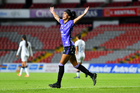 Querétaro, Querétaro, 9 de febrero de 2026. Guillermina Grant anota gol, durante el partido correspondiente a la jornada 8 del torneo Clausura 2026 de la Liga BBVA MX Femenil, entre el Club Querétaro y las Cañoneras del Mazatlán FC, realizado en el estadio La Corregidora. Foto: Imago7/ Olimpia Puga