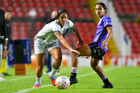 Querétaro, Querétaro, 9 de febrero de 2026. Vanessa González (I), durante el partido correspondiente a la jornada 8 del torneo Clausura 2026 de la Liga BBVA MX Femenil, entre el Club Querétaro y las Cañoneras del Mazatlán FC, realizado en el estadio La Corregidora. Foto: Imago7/ Olimpia Puga