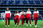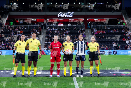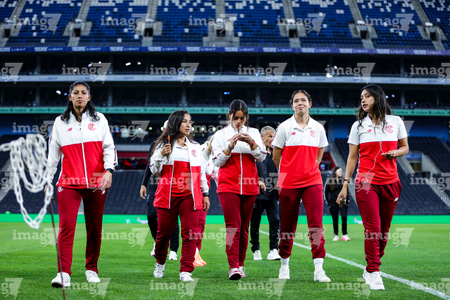 Guadalupe, Nuevo León, 9 de febrero de 2026. Protocolo, durante el partido correspondiente a la jornada 8 del torneo Clausura 2026 de la Liga BBVA MX Femenil, entre las Rayadas del Monterrey y las Diablas Rojas del Toluca, realizado en el estadio BBVA. Foto: Imago7/ Nora Pamela