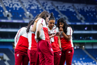 Guadalupe, Nuevo León, 9 de febrero de 2026. Jugadoras del Toluca femenil, durante el partido correspondiente a la jornada 8 del torneo Clausura 2026 de la Liga BBVA MX Femenil, entre las Rayadas del Monterrey y las Diablas Rojas del Toluca, realizado en el estadio BBVA. Foto: Imago7/ Nora Pamela