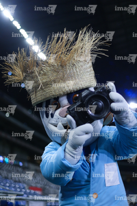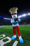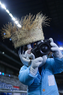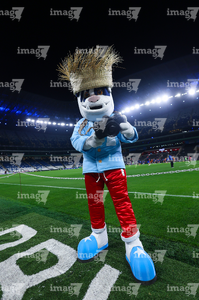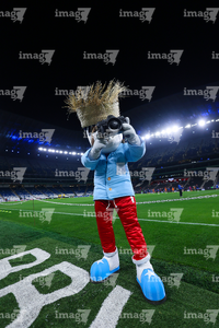 Guadalupe, Nuevo León, 9 de febrero de 2026. Monty disfrazado como Bad Bunny, durante el partido correspondiente a la jornada 8 del torneo Clausura 2026 de la Liga BBVA MX Femenil, entre las Rayadas del Monterrey y las Diablas Rojas del Toluca, realizado en el estadio BBVA. Foto: Imago7/