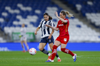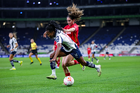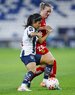 Guadalupe, Nuevo León, 9 de febrero de 2026. Eugenie Le Sommer y Sofia Jakobsson, durante el partido correspondiente a la jornada 8 del torneo Clausura 2026 de la Liga BBVA MX Femenil, entre las Rayadas del Monterrey y las Diablas Rojas del Toluca, realizado en el estadio BBVA. Foto: Imago7/ Nora Pamela