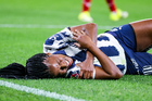 Guadalupe, Nuevo León, 9 de febrero de 2026. Jermaine Seoposenwe resultó lesionada, durante el partido correspondiente a la jornada 8 del torneo Clausura 2026 de la Liga BBVA MX Femenil, entre las Rayadas del Monterrey y las Diablas Rojas del Toluca, realizado en el estadio BBVA. Foto: Imago7/ Nora Pamela