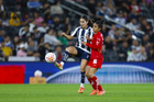 Guadalupe, Nuevo León, 9 de febrero de 2026. Katty Martínez, durante el partido correspondiente a la jornada 8 del torneo Clausura 2026 de la Liga BBVA MX Femenil, entre las Rayadas del Monterrey y las Diablas Rojas del Toluca, realizado en el estadio BBVA. Foto: Imago7/ Nora Pamela