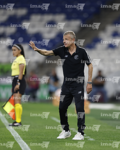 Guadalupe, Nuevo León, 9 de febrero de 2026. Amandine Miquel, directora técnica, durante el partido correspondiente a la jornada 8 del torneo Clausura 2026 de la Liga BBVA MX Femenil, entre las Rayadas del Monterrey y las Diablas Rojas del Toluca, realizado en el estadio BBVA. Foto: Imago7/