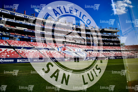 San Luis Potosí, San Luis Potosí, 10 de febrero de 2026. Escudo, durante el partido correspondiente a la jornada 8 del torneo Clausura 2026 de la Liga BBVA MX Femenil, entre el Atlético San Luis y las Tuzas del Pachuca, realizado en el estadio Libertad Financiera. Foto: Imago7/ Olimpia Puga