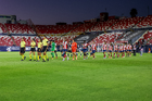 San Luis Potosí, San Luis Potosí, 10 de febrero de 2026. Protocolo, durante el partido correspondiente a la jornada 8 del torneo Clausura 2026 de la Liga BBVA MX Femenil, entre el Atlético San Luis y las Tuzas del Pachuca, realizado en el estadio Libertad Financiera. Foto: Imago7/ Hugo Martinez