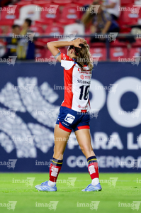 San Luis Potosí, San Luis Potosí, 10 de febrero de 2026. Charlyn Corral en lamento, durante el partido correspondiente a la jornada 8 del torneo Clausura 2026 de la Liga BBVA MX Femenil, entre el Atlético San Luis y las Tuzas del Pachuca, realizado en el estadio Libertad Financiera. Foto: Imago7/ Olimpia Puga