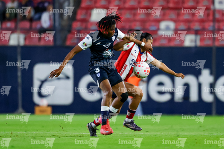 San Luis Potosí, San Luis Potosí, 10 de febrero de 2026. Ohale Osinachi y Enyerliannys Higuera, durante el partido correspondiente a la jornada 8 del torneo Clausura 2026 de la Liga BBVA MX Femenil, entre el Atlético San Luis y las Tuzas del Pachuca, realizado en el estadio Libertad Financiera. Foto: Imago7/ Olimpia Puga