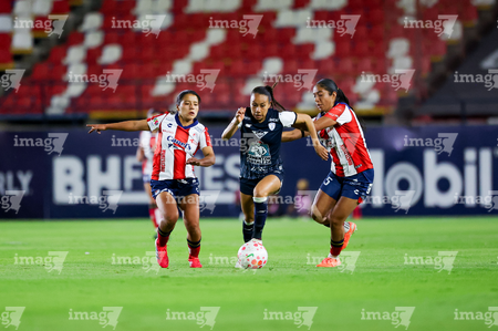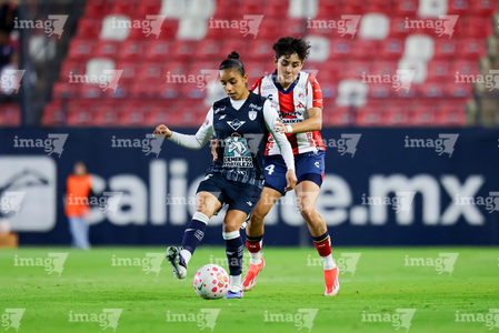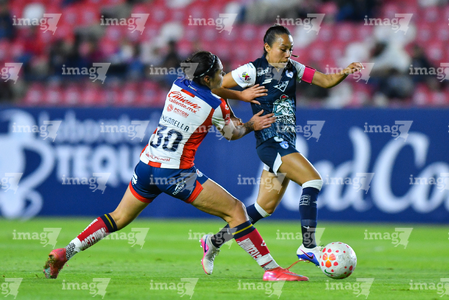 San Luis Potosí, San Luis Potosí, 10 de febrero de 2026. Viridiana López y Charlyn Corral, durante el partido correspondiente a la jornada 8 del torneo Clausura 2026 de la Liga BBVA MX Femenil, entre el Atlético San Luis y las Tuzas del Pachuca, realizado en el estadio Libertad Financiera. Foto: Imago7/ Hugo Martinez