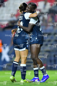 San Luis Potosí, San Luis Potosí, 10 de febrero de 2026. Mackenzee Vance y Chinwendu Ihezuo en festejo de gol, durante el partido correspondiente a la jornada 8 del torneo Clausura 2026 de la Liga BBVA MX Femenil, entre el Atlético San Luis y las Tuzas del Pachuca, realizado en el estadio Libertad Financiera. Foto: Imago7/ Olimpia Puga