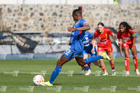 Cuernavaca, Morelos, 12 de marzo de 2026. Portigoles, durante el partido correspondiente a la jornada 11 del torneo Clausura 2026 de la Liga BBVA MX Femenil, entre la Máquina Celeste del Cruz Azul y las Centellas del Necaxa, realizado en el estadio de la Unidad Deportiva Centenario. Foto: Imago7/ Daniel Sydney