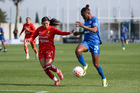 Cuernavaca, Morelos, 12 de marzo de 2026. Ani Jensen, durante el partido correspondiente a la jornada 11 del torneo Clausura 2026 de la Liga BBVA MX Femenil, entre la Máquina Celeste del Cruz Azul y las Centellas del Necaxa, realizado en el estadio de la Unidad Deportiva Centenario. Foto: Imago7/ Daniel Sydney