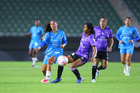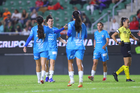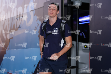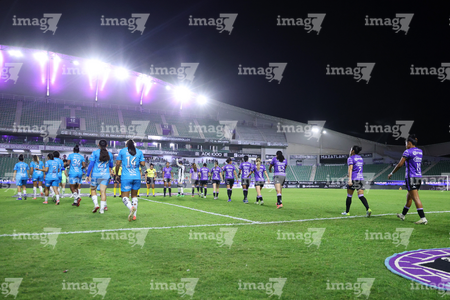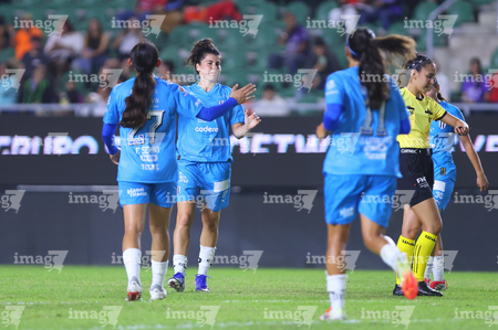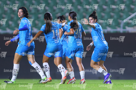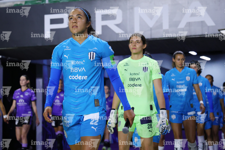 Mazatlán, Sinaloa, 12 de marzo de 2026. Jugadoras de Rayadas, durante el partido correspondiente a la jornada 11 del torneo Clausura 2026 de la Liga BBVA MX Femenil, entre las Cañoneras del Mazatlán FC y las Rayadas del Monterrey, realizado en el estadio El Encanto. Foto: Imago7/ Juan Carlos Cubeyro.
