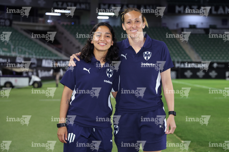Mazatlán, Sinaloa, 12 de marzo de 2026. Embajadora, director técnico, durante el partido correspondiente a la jornada 11 del torneo Clausura 2026 de la Liga BBVA MX Femenil, entre las Cañoneras del Mazatlán FC y las Rayadas del Monterrey, realizado en el estadio El Encanto. Foto: Imago7/ Juan Carlos Cubeyro.