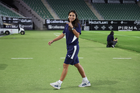 Mazatlán, Sinaloa, 12 de marzo de 2026. Embajadora, durante el partido correspondiente a la jornada 11 del torneo Clausura 2026 de la Liga BBVA MX Femenil, entre las Cañoneras del Mazatlán FC y las Rayadas del Monterrey, realizado en el estadio El Encanto. Foto: Imago7/ Juan Carlos Cubeyro.