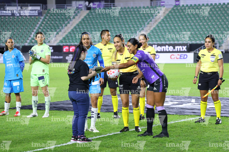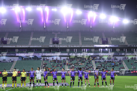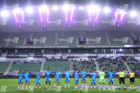 Mazatlán, Sinaloa, 12 de marzo de 2026. Protocolo, durante el partido correspondiente a la jornada 11 del torneo Clausura 2026 de la Liga BBVA MX Femenil, entre las Cañoneras del Mazatlán FC y las Rayadas del Monterrey, realizado en el estadio El Encanto. Foto: Imago7/ Juan Carlos Cubeyro.