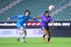 Mazatlán, Sinaloa, 12 de marzo de 2026. Valerie Vargas y Daniela García, durante el partido correspondiente a la jornada 11 del torneo Clausura 2026 de la Liga BBVA MX Femenil, entre las Cañoneras del Mazatlán FC y las Rayadas del Monterrey, realizado en el estadio El Encanto. Foto: Imago7/ Juan Carlos Cubeyro.