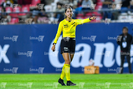 San Luis Potosí, San Luis Potosí, 11 de marzo de 2026. Arbitra Central Mariana Gómez Jaime, durante el partido correspondiente a la jornada 11 del torneo Clausura 2026 de la Liga BBVA MX Femenil, entre el Atlético San Luis y el Club Puebla, realizado en el estadio Libertad Financiera. Foto: Imago7/ Olimpia Puga