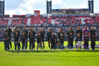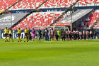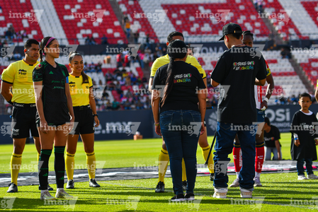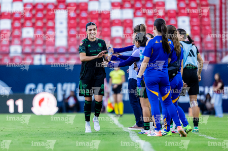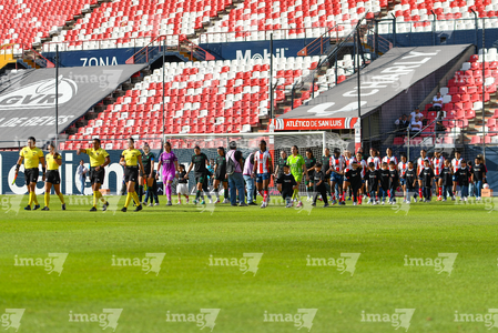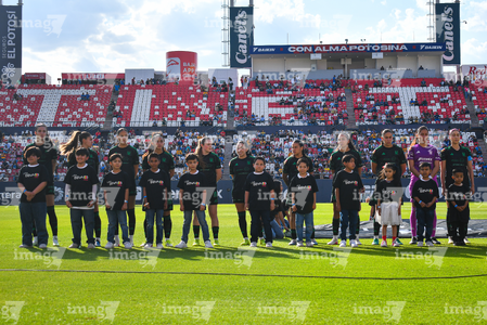 San Luis Potosí, San Luis Potosí, 22 de marzo de 2026. Protocolo, durante el partido correspondiente a la jornada 13 del torneo Clausura 2026 de la Liga BBVA MX Femenil, entre el Atlético San Luis y las Tigres de la UANL, realizado en el estadio Libertad Financiera. Foto: Imago7/ Olimpia Puga