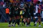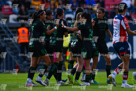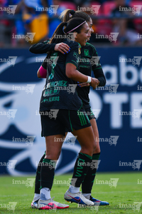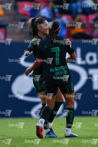 San Luis Potosí, San Luis Potosí, 22 de marzo de 2026. María Sánchez y Jheniffer Cordinali en festejo de gol, durante el partido correspondiente a la jornada 13 del torneo Clausura 2026 de la Liga BBVA MX Femenil, entre el Atlético San Luis y las Tigres de la UANL, realizado en el estadio Libertad Financiera. Foto: Imago7/ Olimpia Puga
